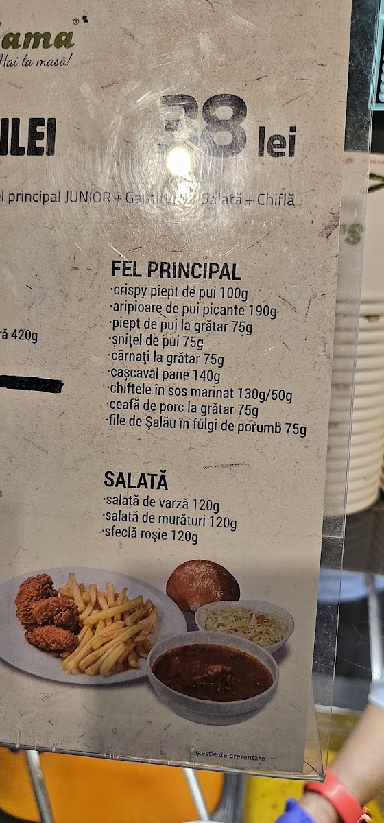 Located on Calea Dumbravii 39 in Sibiu, Super Mama serves up delicious, home-cooked style meals that capture the essence of Romanian cuisine, with a side of international favorites. The breakfast offerings feature hearty dishes like Ouă Ochiuri paired with either tea or coffee, showcasing fresh ingredients like eggs, bacon, and cheese—all at a price of RON 29.00.